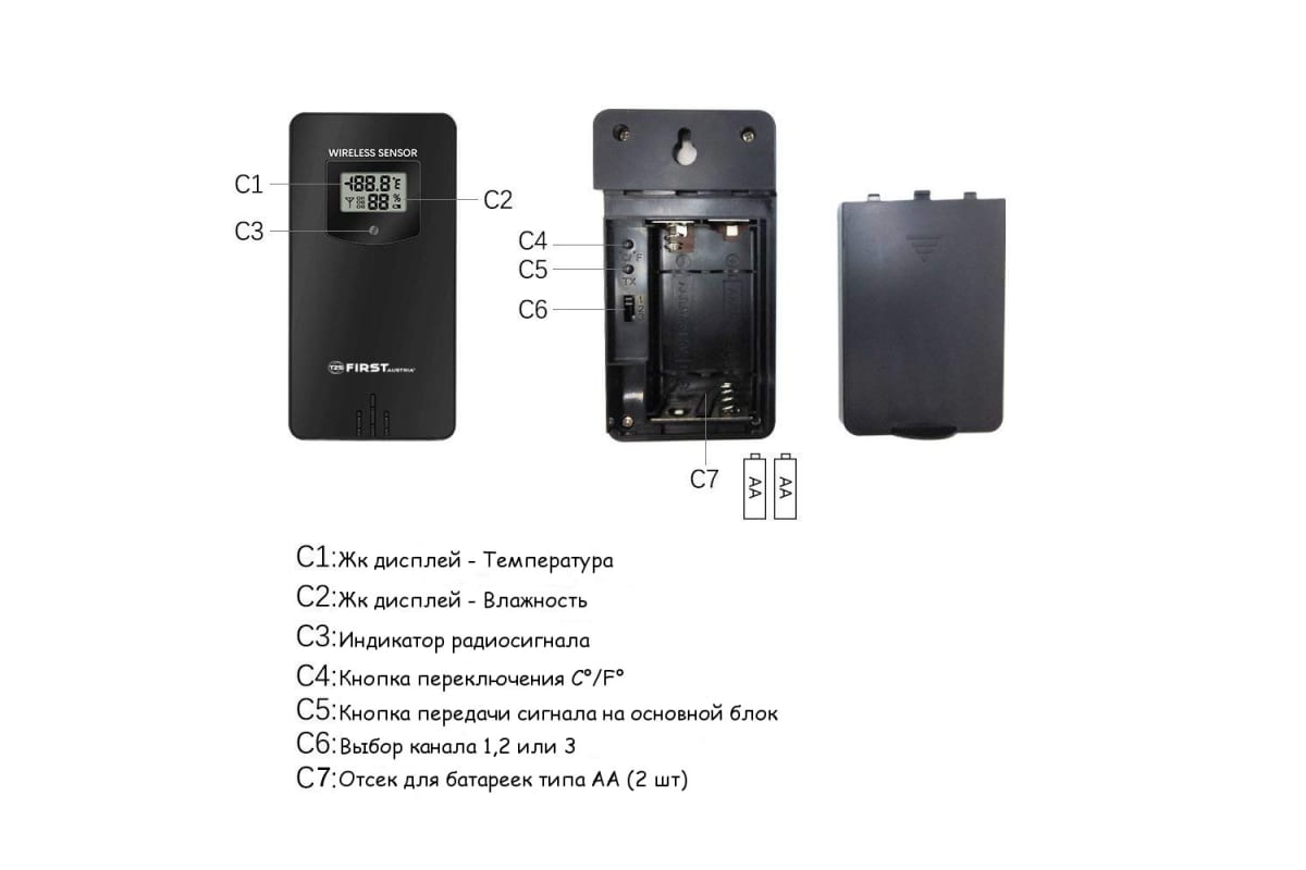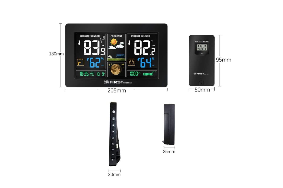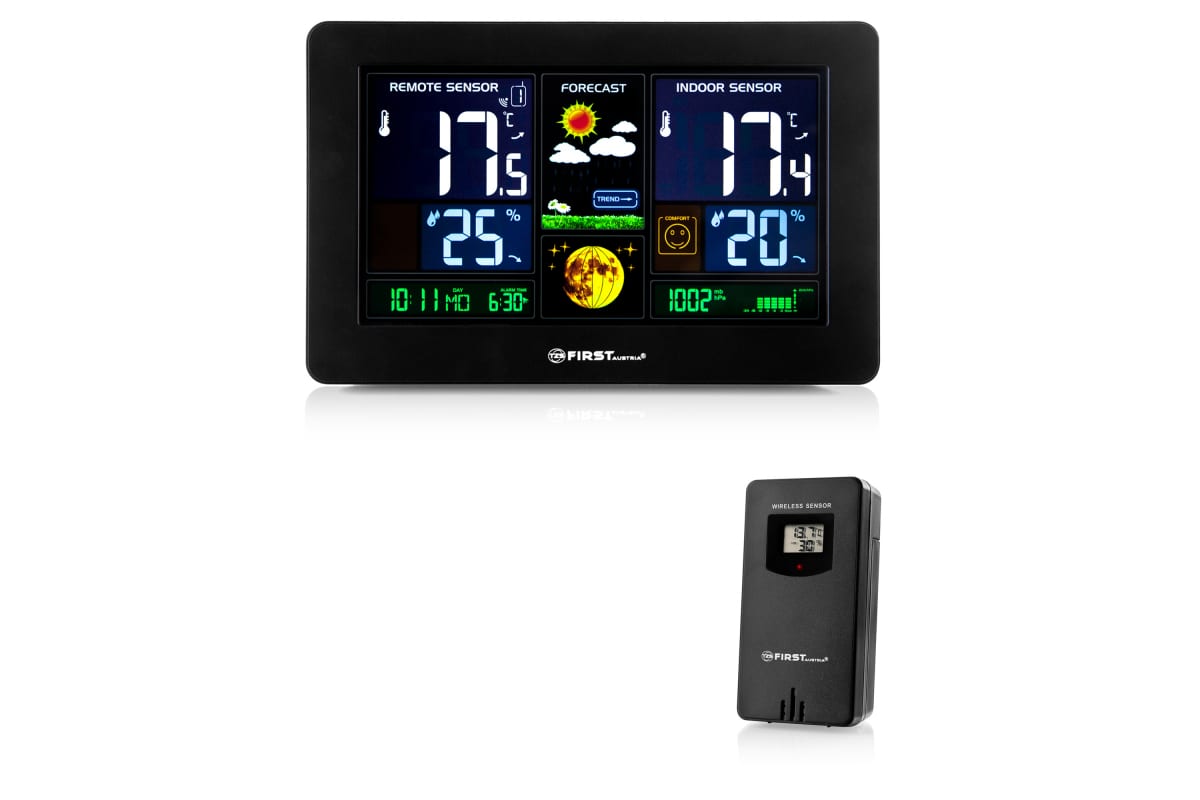 Метеостанция FIRST FA-2461-4 Black используется для определения температуры, влажности и атмосферного давления.