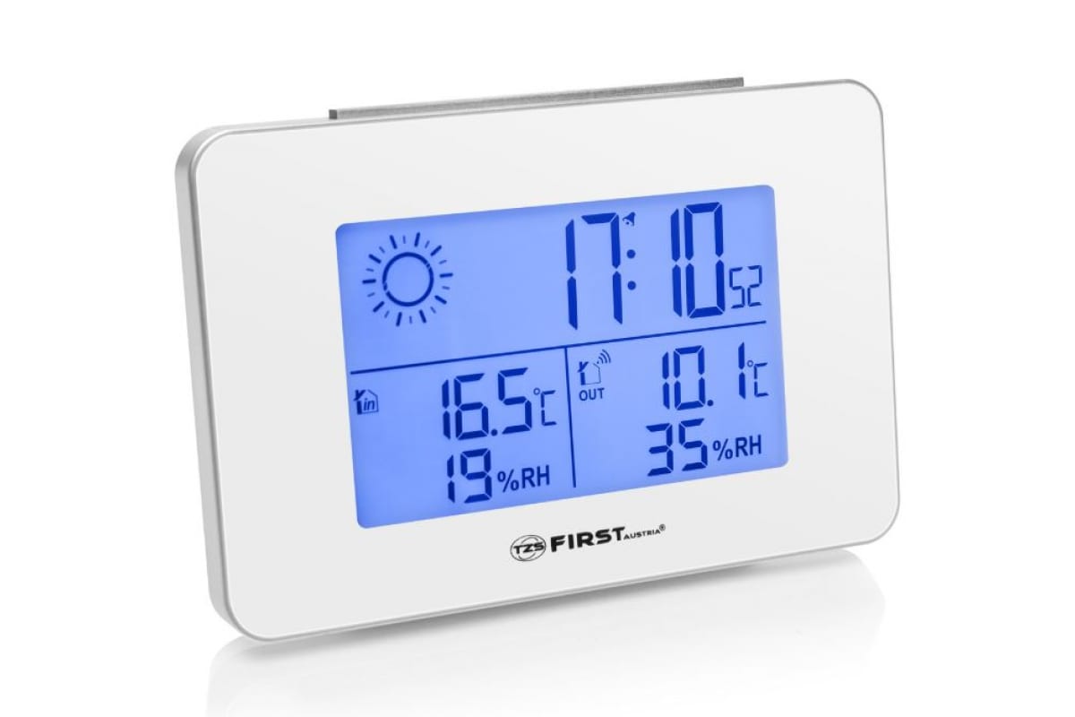 Метеостанция FIRST FA-2461-6-WI используется для измерения температуры внутри и снаружи помещения, влажности воздуха.