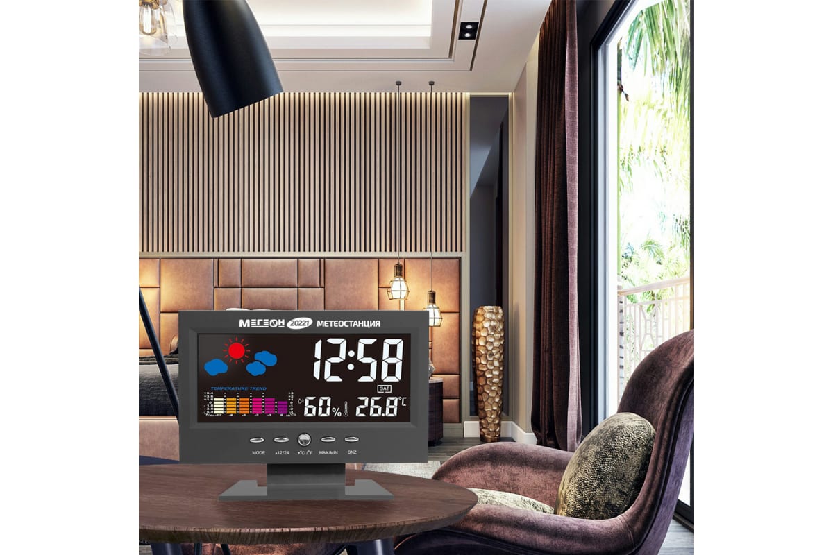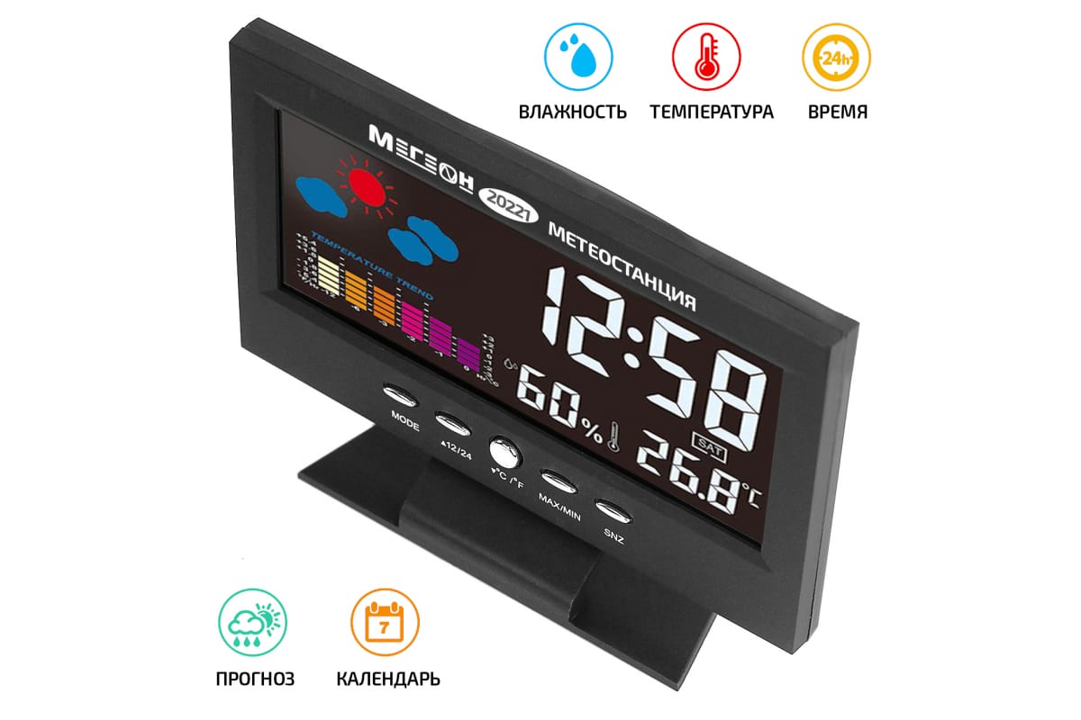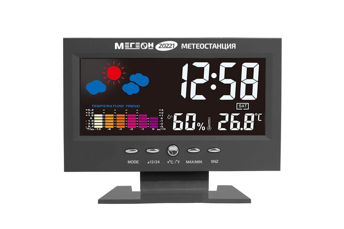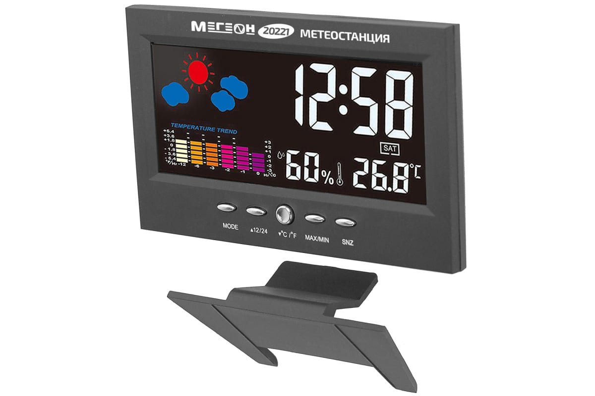Метеостанция МЕГЕОН 20221 к0000034738 подходит для домашнего использования. Имеет стильный внешний вид и яркий цветной ЖК-дисплей.