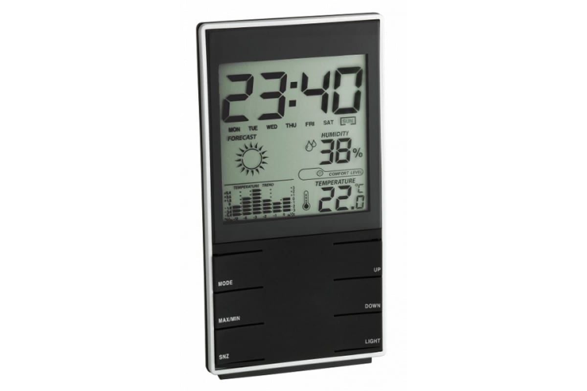 Цифровая метеостанция TFA 35.1102.01 предназначена для измерения температуры и влажности воздуха внутри помещения.