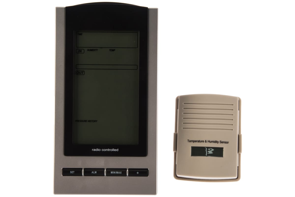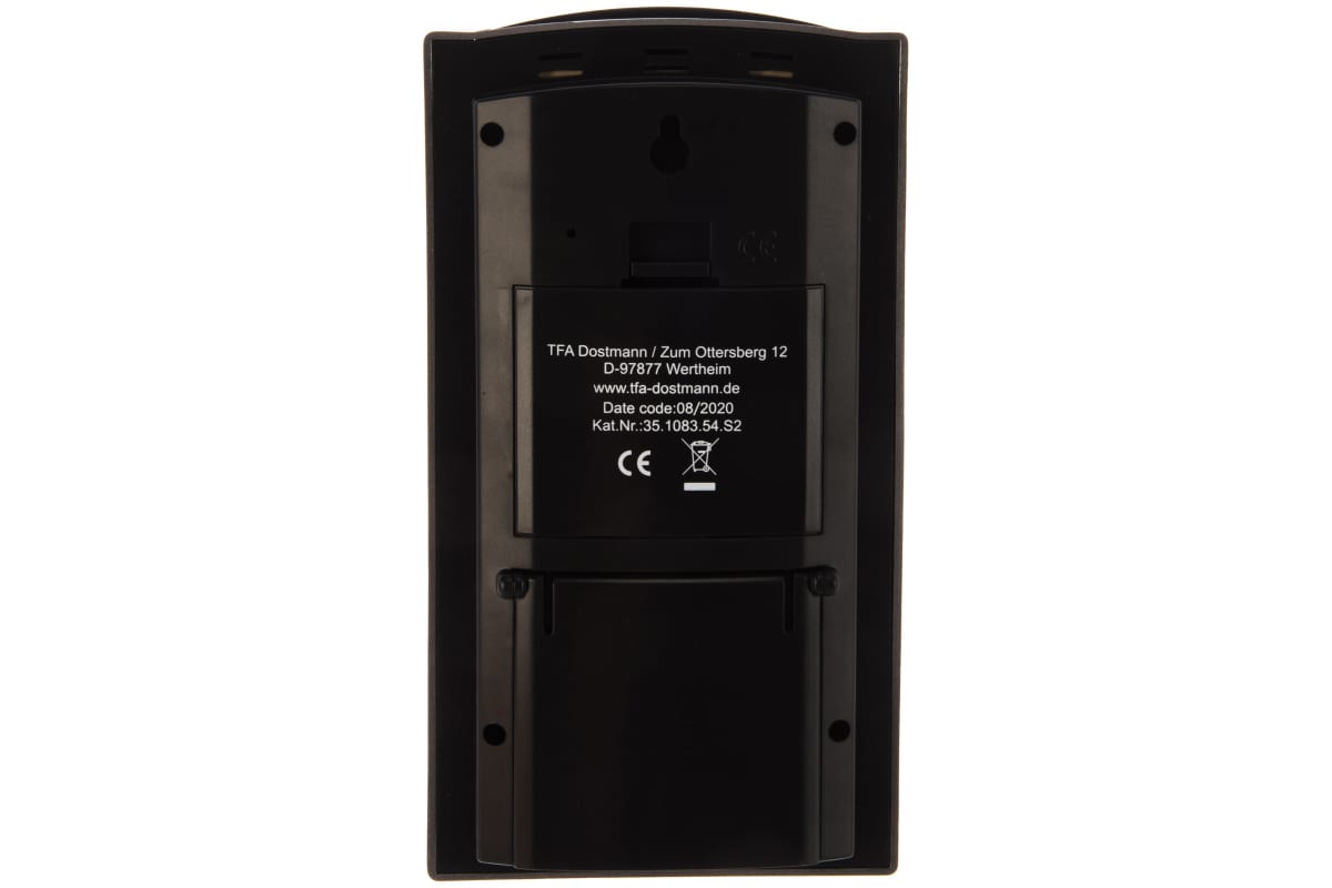 Цифровая метеостанция с показаниями давления TFA 35.1083.54 измеряет температуру и влажность воздуха внутри и снаружи помещения.