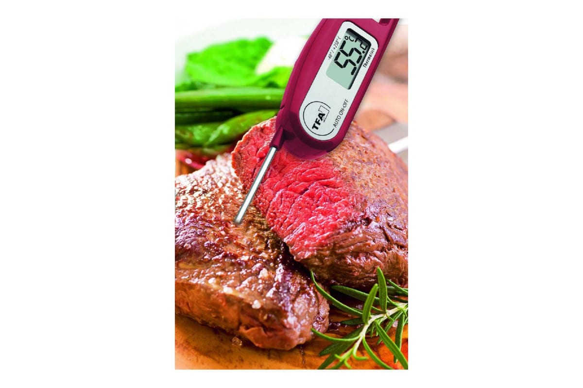 Электронный термометр с щупом TFA белый 30.1047.02 пригодится для определения температуры готовой пищи, жидких, пастообразных и полутвердых материалов. Отличается высокой точностью.