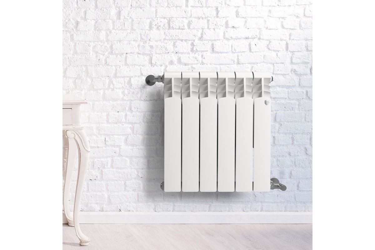 Биметаллический прибор крепится на стену, он может использоваться с водой или с химически агрессивными теплоносителями.