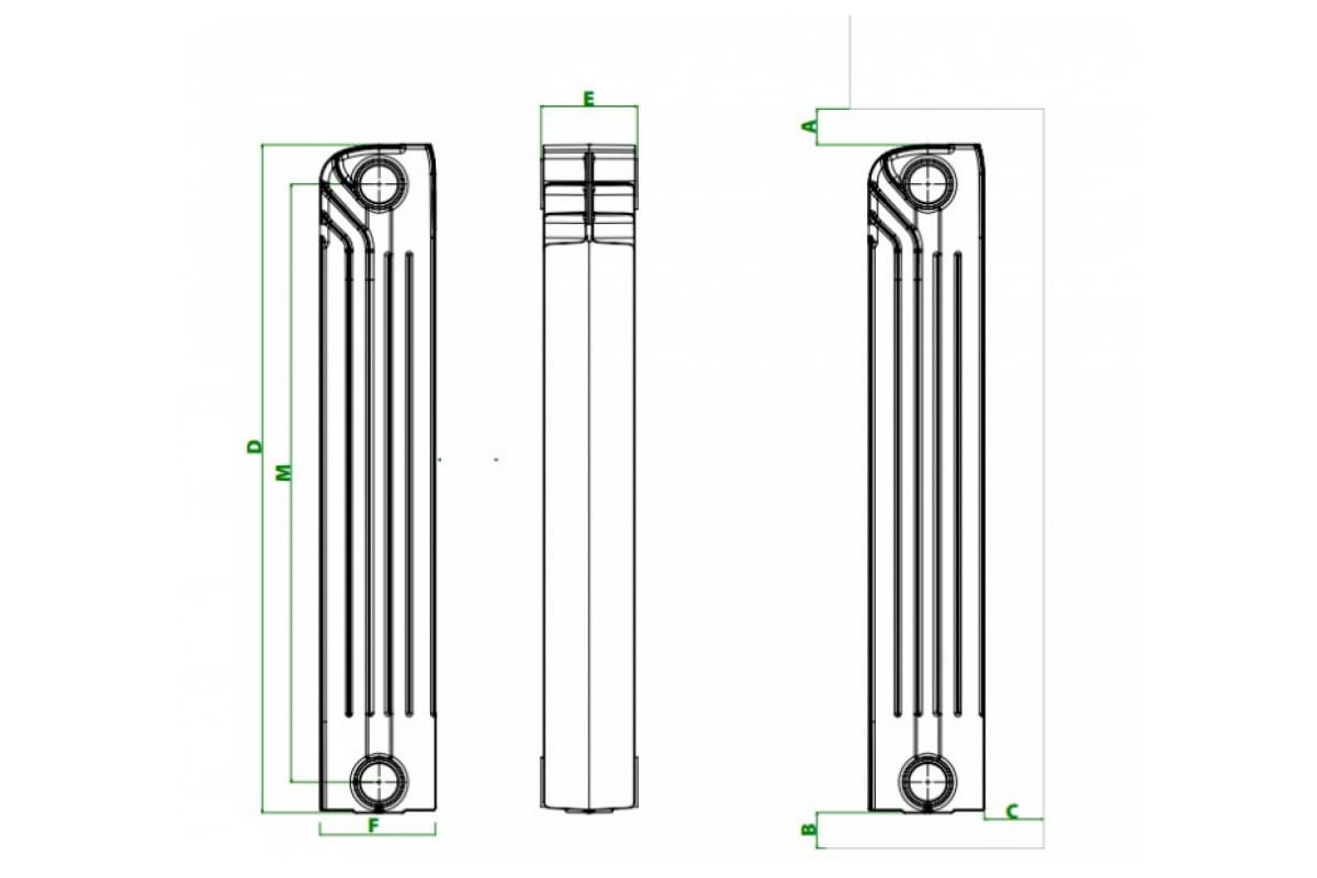 Корпус выполнен из алюминия, внутри каждой секции радиатора расположен стальной сердечник, защищающий алюминиевые элементы от контакта с агрессивными теплоносителями. Секции соединены между собой ниппелями.