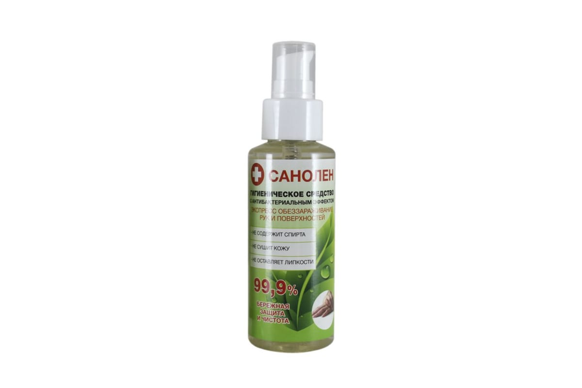 Гигиеническое средство Радуга САНОЛЕН 180 мл 145195 применяется для обработки рук и поверхностей.