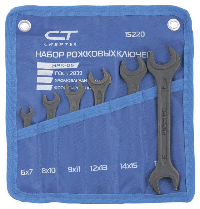 - Размеры ключей в наборе, в миллиметрах 6x7; 8x10; 9x11; 12x13; 14x15; 17x19