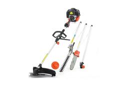 Многозадачность. Агрегат объединяет в себе ножницы для живой изгороди, цепную пилу и триммер-кусторез с двумя режущими элементами для выполнения различных задач на участке.