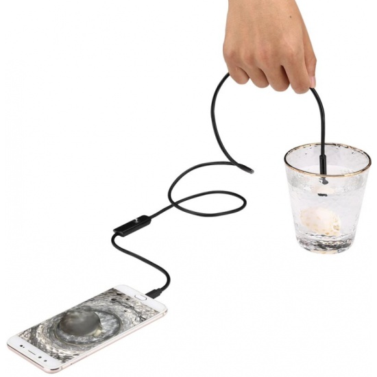 Водонепроницаемый эндоскоп подходит для использования при помощи телефонов с ОС Android и компьютеров с ОС Windows. Используя эндоскоп удобно снимать фото и видео в труднодоступных местах. Эндоскоп имеет светодиодную подсветку, благодаря которой есть возможность снимать при слабом освещении или даже в темноте, яркость светодиодов можно регулировать. Вся информация записывается на устройство. Камера водонепроницаемая со стандартом защиты IP67.