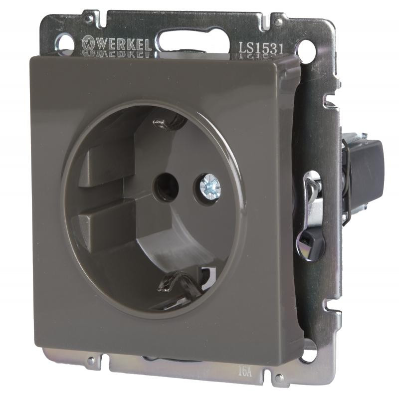 Механизм розетки Werkel WL07-SKG-01-IP20 одноместный с заземлением серо-коричневый