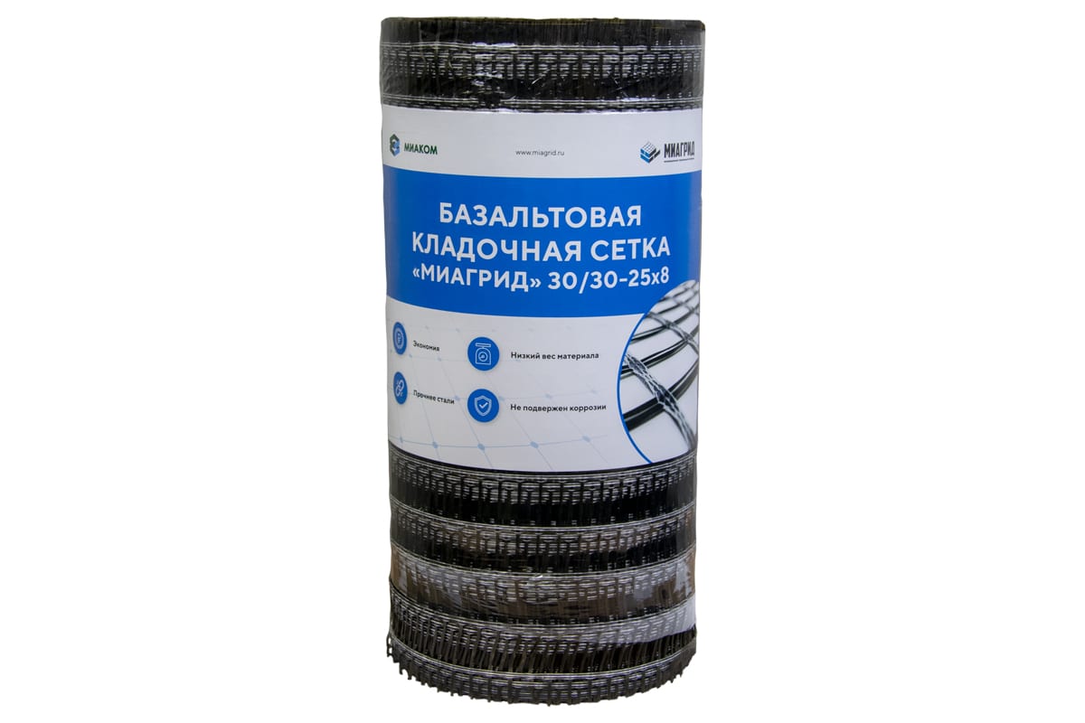 Сетка базальтовая (25х8 мм; 0.2х50 м; 30 кН/м) Миагрид 00-00011877 предназначена для армирования горизонтальных швов кладки для повышения несущей способности стен. А также для компенсации температурно-влажностных напряжений при возведении стен и при проведении работ по их ремонту, усилению.
