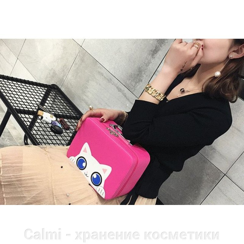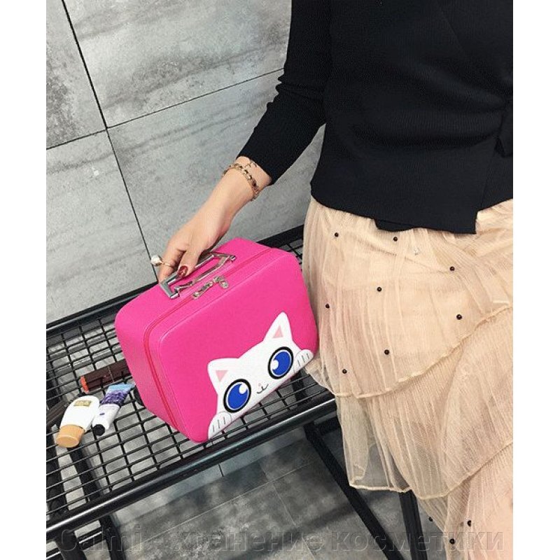 Кейс чемоданчик для косметики "Котик с голубыми глазками" 4-1027-1 Малиновый