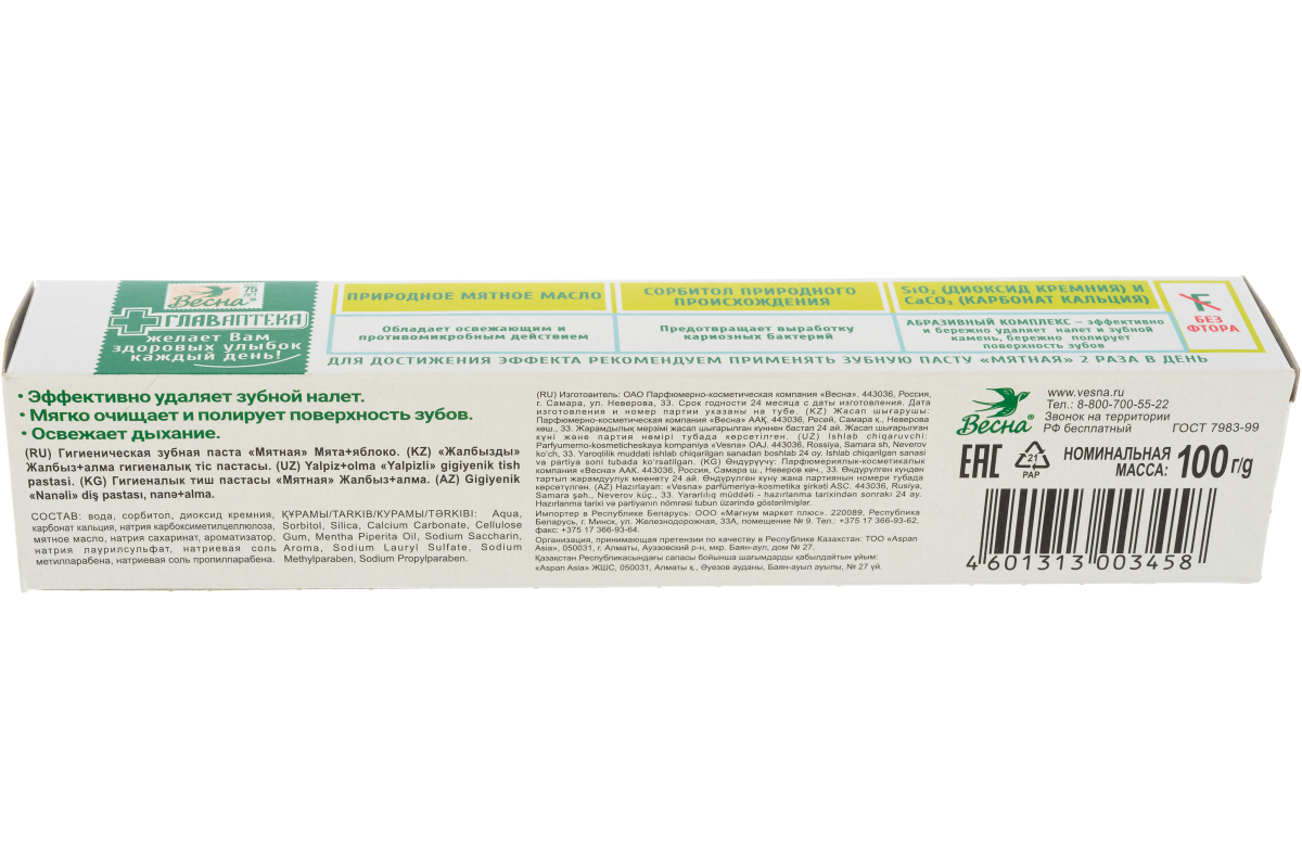 Зубная паста Весна ГЛАВАПТЕКА Мятная Мята+Яблоко 100г МДК-8015