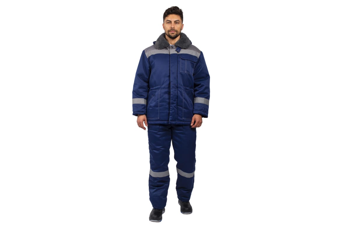 Зимний костюм ФАКЕЛ Легион-Ультра СОП, темно-синий/серый, размер 64-66, рост 182-188 87473882.013 предназначен для защиты от механических воздействий и загрязнений в условиях пониженных температур.