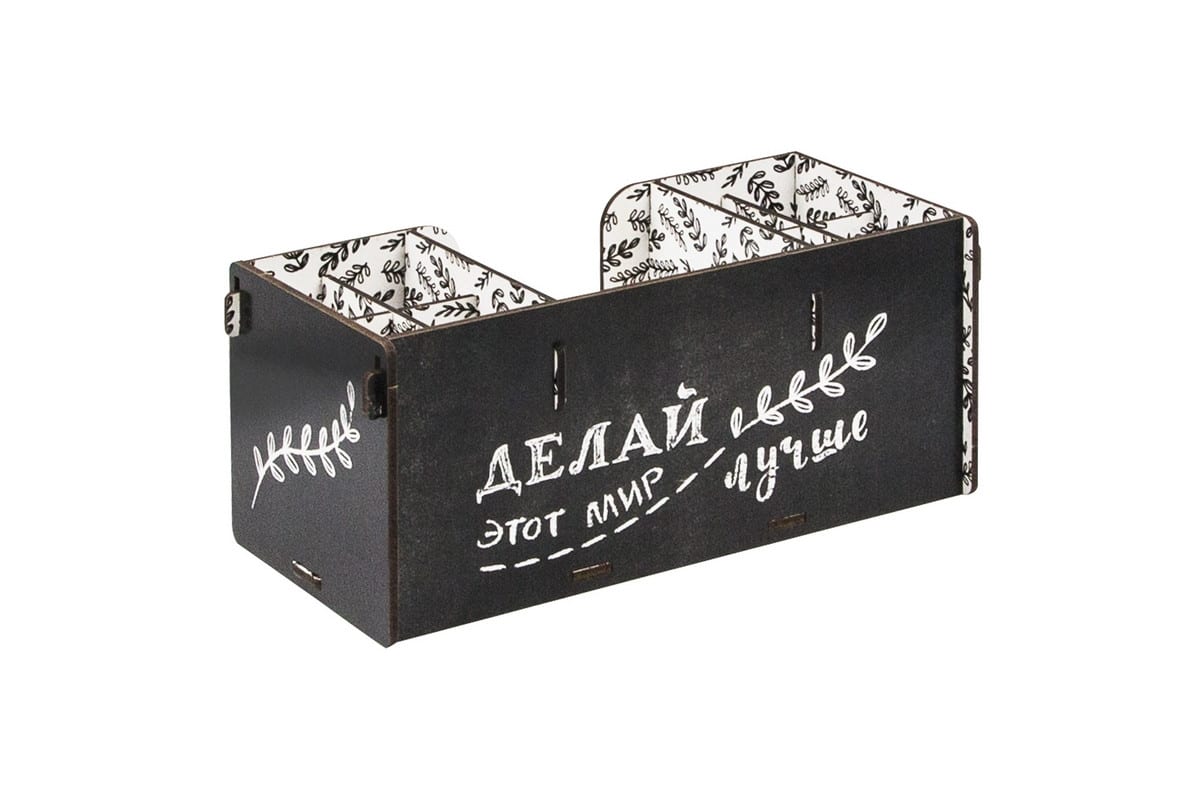 Подставка для канцелярских принадлежностей Attache ECO Офис 220x95x95 мм, дерево, черный/белый 1110592