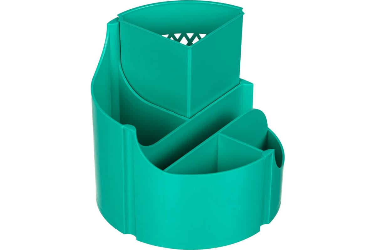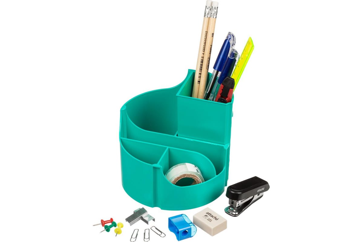 Настольный пластиковый набор Attache Оптима 14 предметов, бирюзовый, 6 отделений, вращающийся 1202378 помогает организовать хранение на рабочем столе.