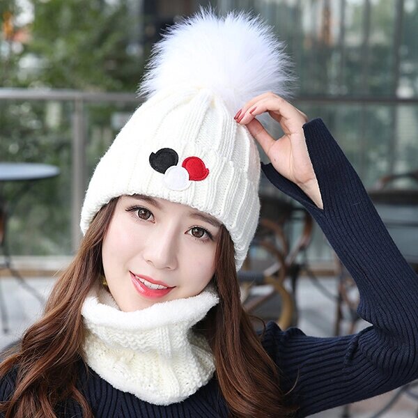 Женское Ветрозащитный сгущает Plus Бархатный трикотаж Шапка Шарф Набор зимних наушников Шапочка