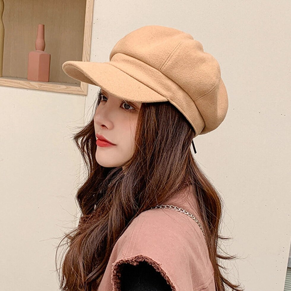 Женский однотонный шерстяной восьмиугольный Шапка Осенне-зимний утолщенный теплый берет Cap Painter Шапка