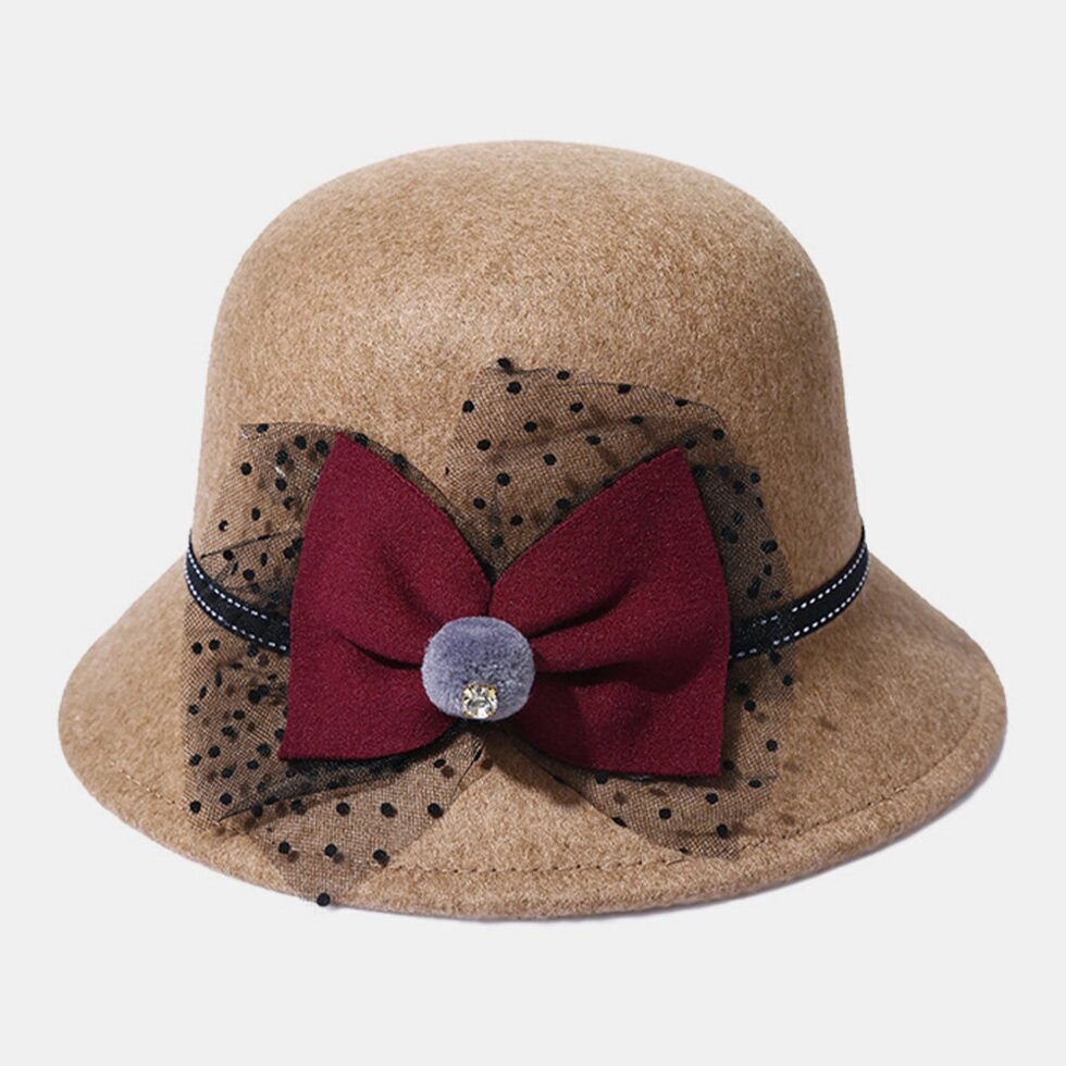 Женский зимний На открытом воздухе Cool Protection Warm Top Шапка Фетровое украшение с бантом кружево Fedora Шапка ведро