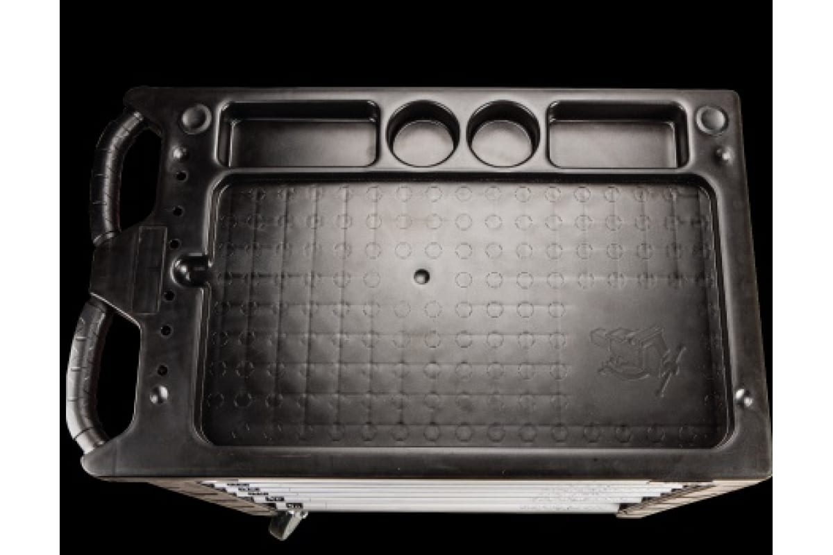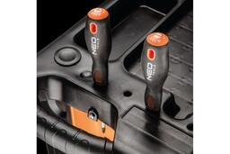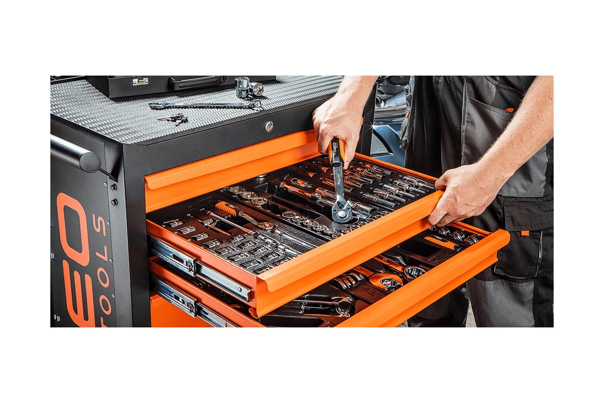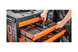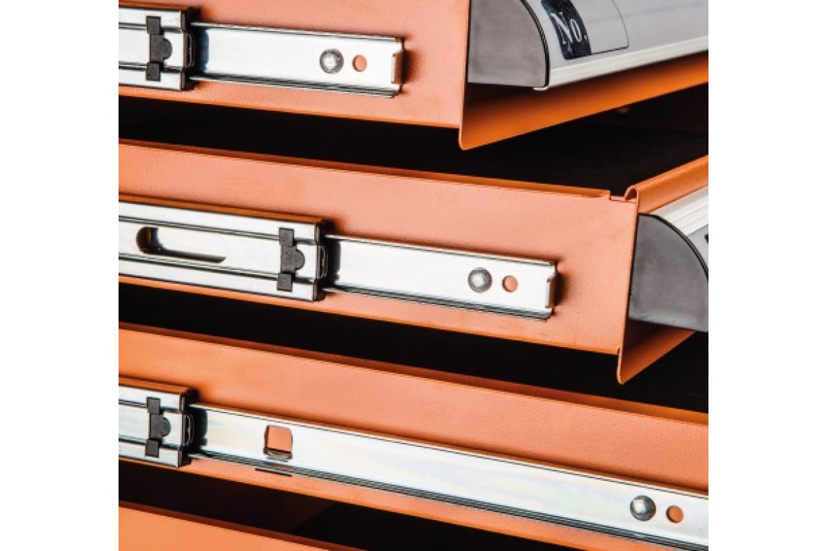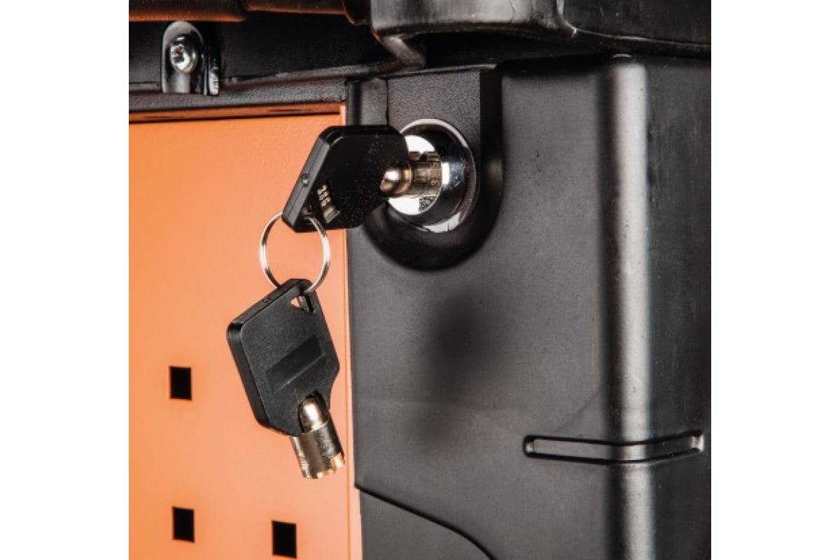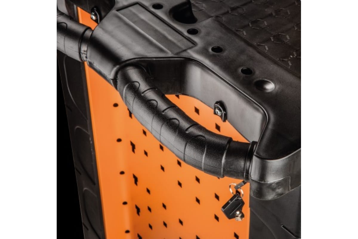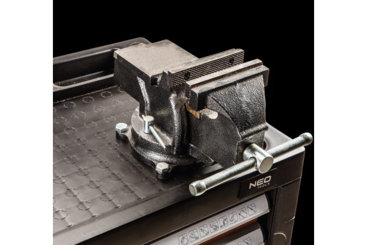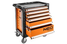 Тележка для инструмента NEO 84-223 представляет собой стальной шкафчик для хранения принадлежностей в мастерской и на СТО (станции технического обслуживания). Отличается маневренностью и большой грузоподъемностью. Имеет выдвижные ящики, которые закрываются одним поворотом ключа, широкую рабочую поверхность с резиновым покрытием, отсеки для разных мелочей. Пятидюймовые колеса из ПВХ оснащены тормозом.
