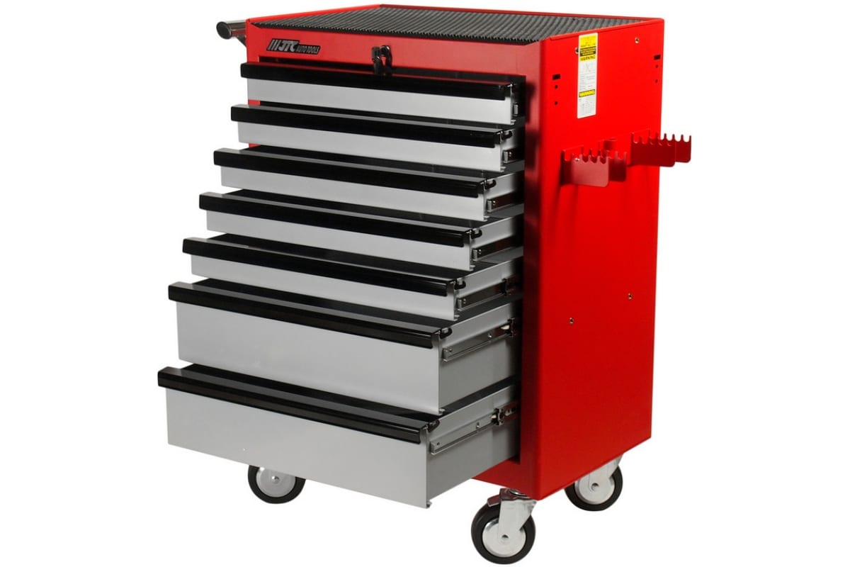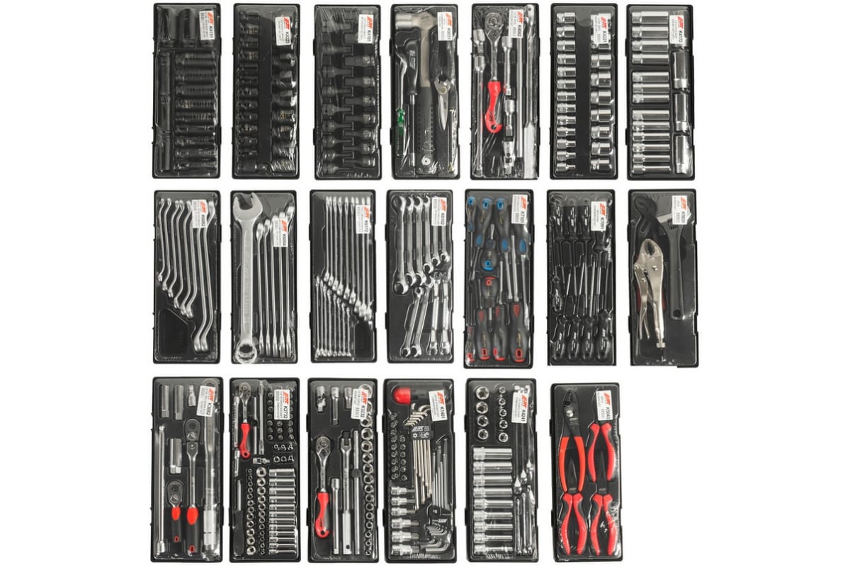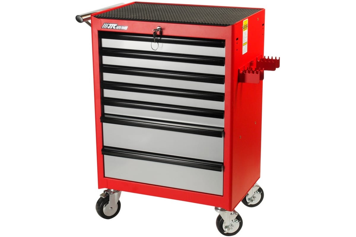 Инструментальная тележка с набором инструментов 7 секций 344 предмета JTC-3931+344 - оптимальный вариант мобильной системы хранения для упорядоченного размещения рабочего инструмента. Тележка станет надежным помощником для любого мастера в быту (в гараже, домашней мастерской) или профессиональной сфере деятельности (на производстве, в автосервисе и пр.). Пять из семи секций уже заполнены всеми необходимыми инструментами и приспособлениями для возможности выполнения широко спектра работ.