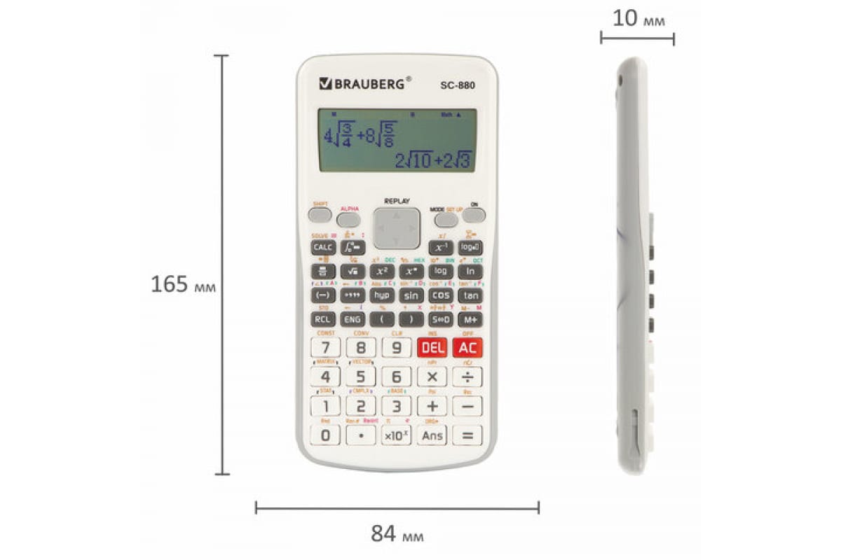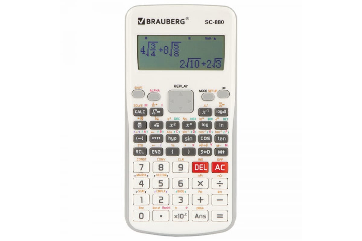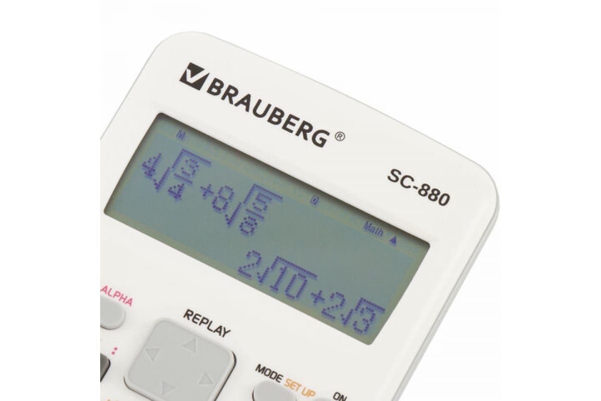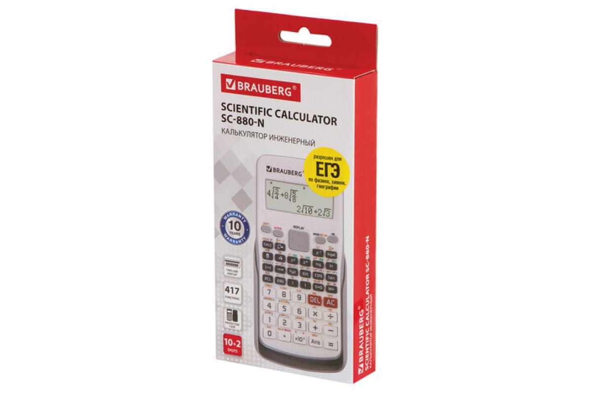 Двухстрочный инженерный калькулятор BRAUBERG SC-880-N 417 функций, 10+2 разрядов, батарея, белый 250526