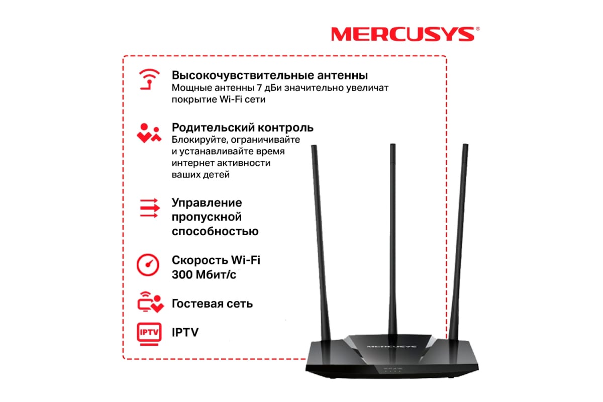 Дополнительные характеристики беспроводного роутера MERCUSYS N300 10/100BASE-TX черный MW330HP: