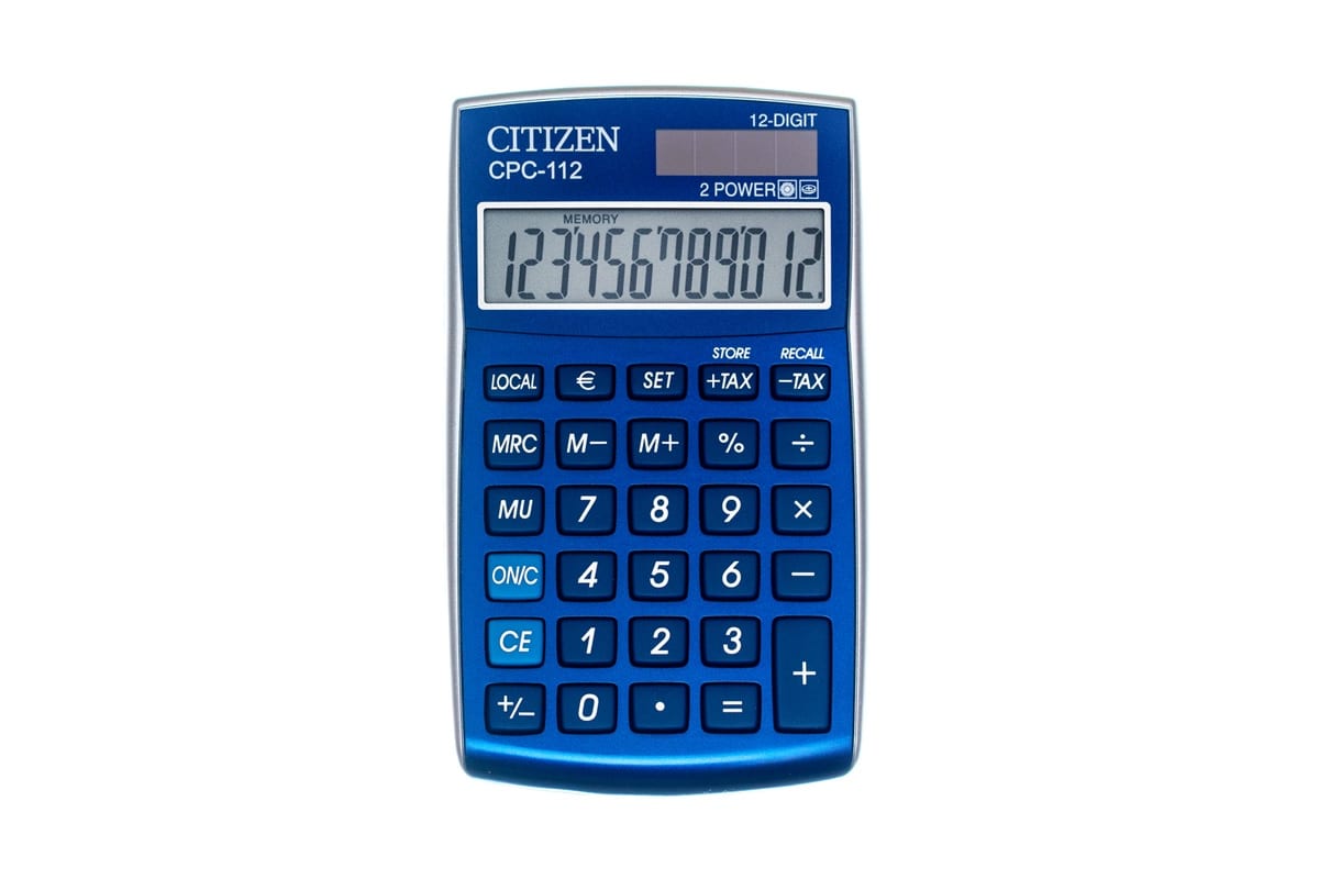 Калькулятор карманный Citizen CPC-112BLWB 12 разрядов, двойное питание, синий