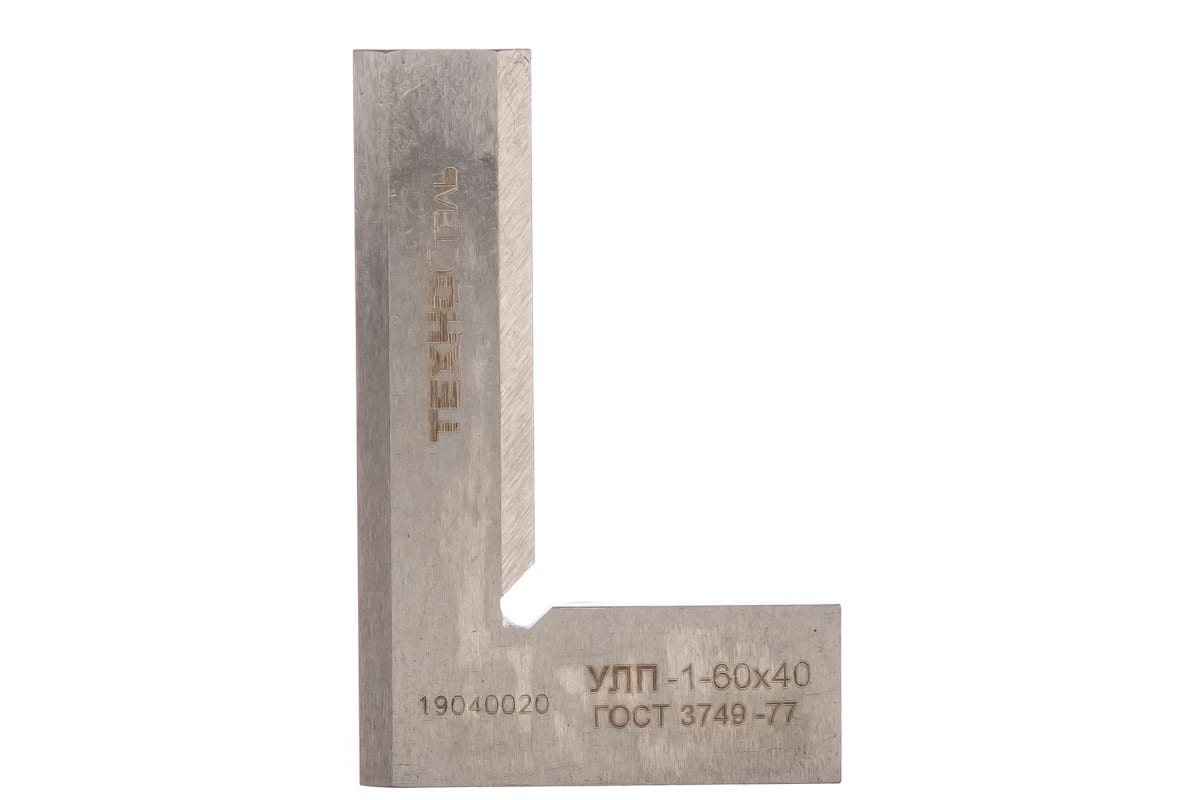 Угольник 60х40 ГОСТ 3749-77 Техносталь УЛП 1 60 F145001 предназначен для проверки прямых углов и применяется для контроля перпендикулярного расположения деталей с высокой точностью. Имеет заостренные измерительные поверхности и плоские опорные поверхности. Угольник изготовлен из прочной инструментальной стали.