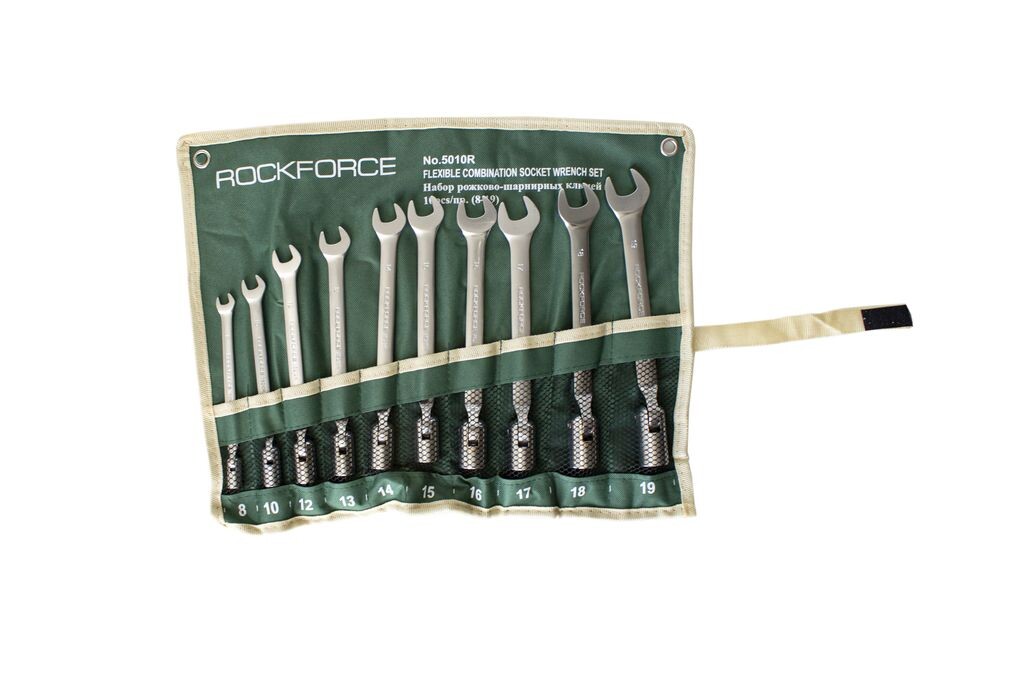 Набор рожково-торцевых ключей Rock FORCE шарнирных 10 предметов на...