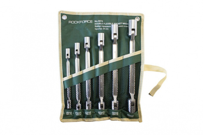 Набор торцевых ключей Rock FORCE шарнирных 6 предметов на полотне...