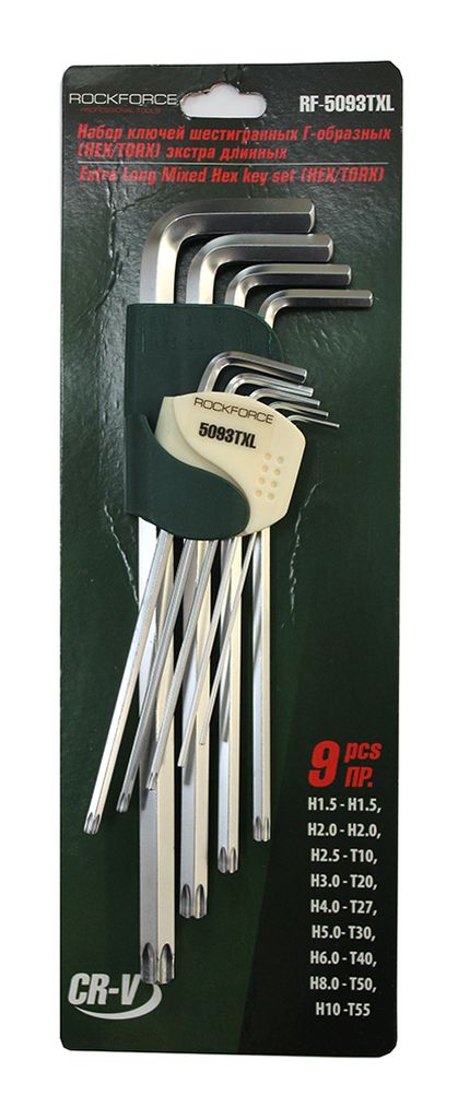 Технические характеристики Rock FORCE 9 предметов HEX/TORX экстрадлинных RF-5093TXL