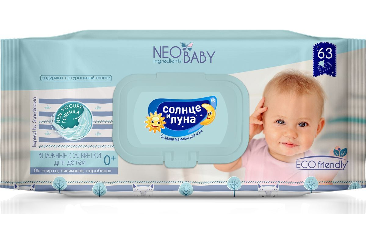 Влажные детские салфетки с крышкой СОЛНЦЕ И ЛУНА НЕЖНОЕ ПРИКОСНОВЕНИЕ 63 шт. 10090
