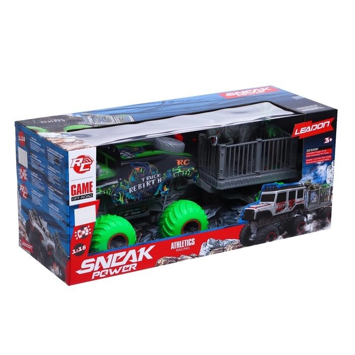 Джип радиоуправляемый Monster, с динозавром, 116, работает от аккумулятора