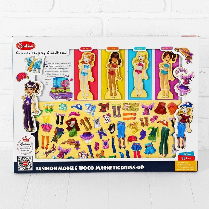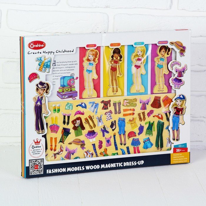Игра на магнитах «Модные девчонки», 63 элемента одежды + 4 куклы