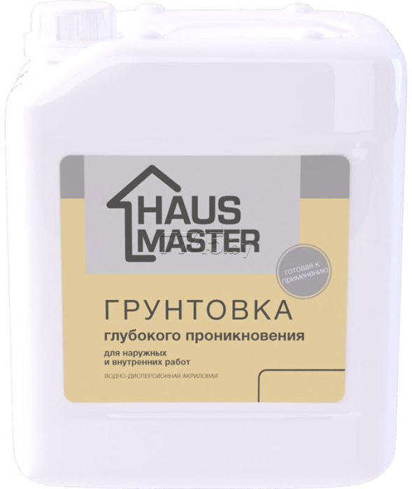 Грунтовка ВД HAUS MASTER глубокого проникновения бесцветная 1 л применяется для наружных и внутренних ремонтно-строительных работ коммунальных объектов, школьных, детских учреждений, офисов, мест проведения спортивных и развлекательных мероприятий, жилых помещений и др.