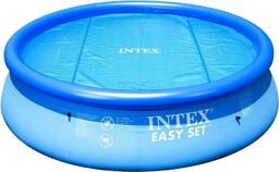 Обогревающий тент-чехол для бассейнов INTEX Easy Set диаметром 244 см. Не крепится к бассейну, достаточно просто положить его на поверхность воды и расправить по всей площади. Имеет двойной эффект: днем позволяет бассейну прогреваться в разы быстрее за счет создания парникового эффекта (ячеистая структура преломляет и рассеивает солнечные лучи, ускоряя тем самым нагрев воды), ночью замедляет отдачу тепла с поверхности воды бассейна. Также отлично защищает от мусора и загрязнения. Тент-покрывало легок в использовании: процесс накрытия бассейна занимает меньше минуты.