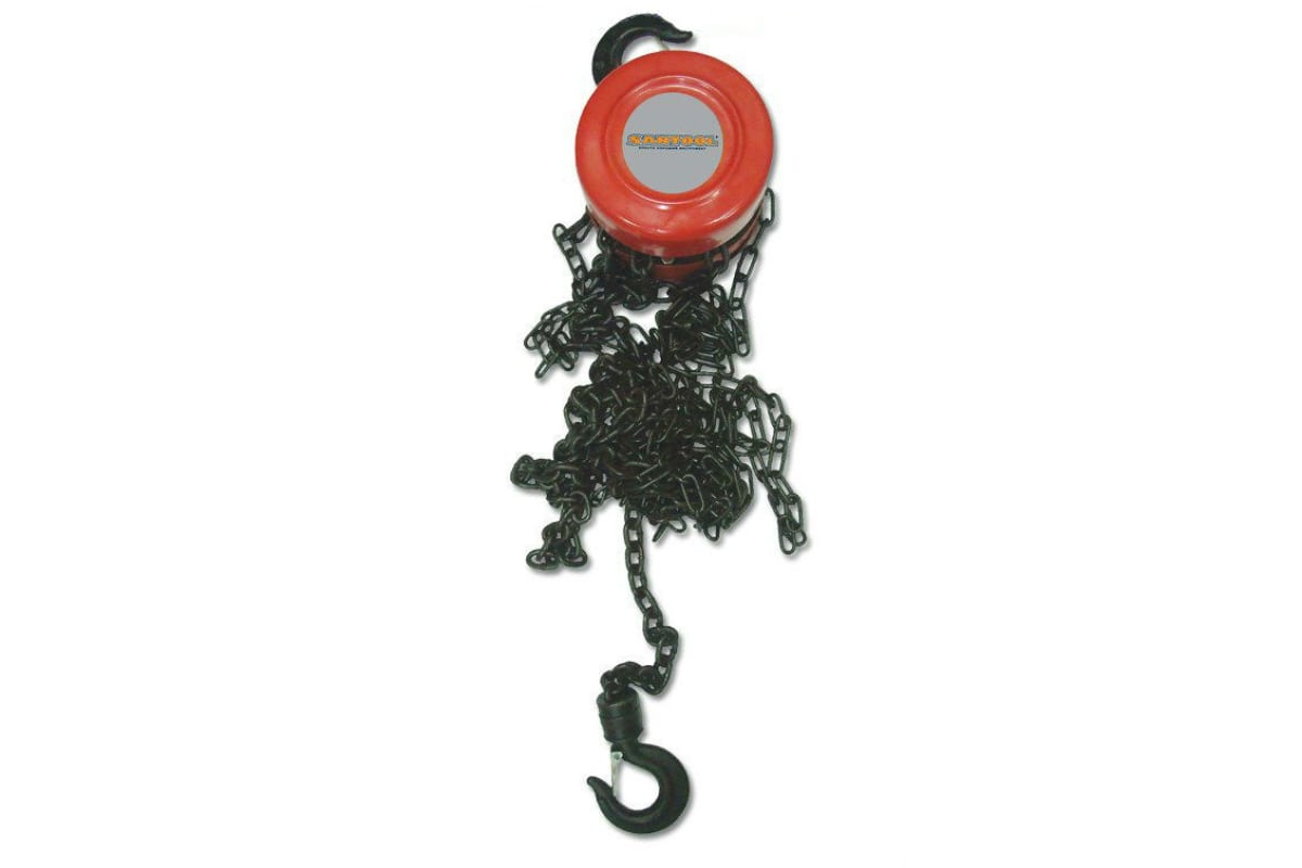 Цепная таль 1 т SANTOOL 110201-100 предназначается для подъема груза на высоту до 2.5 метров. Конструкция модели состоит из блока, который имеет два контура цепей, и крюковой подвески. Тормоз подъемного механизма позволяет избежать самопроизвольного опускания груза. Высокое качество плетения цепей исключает разрыв и гарантирует долгий срок службы. Максимальное расстояние между крюками - 265 см.