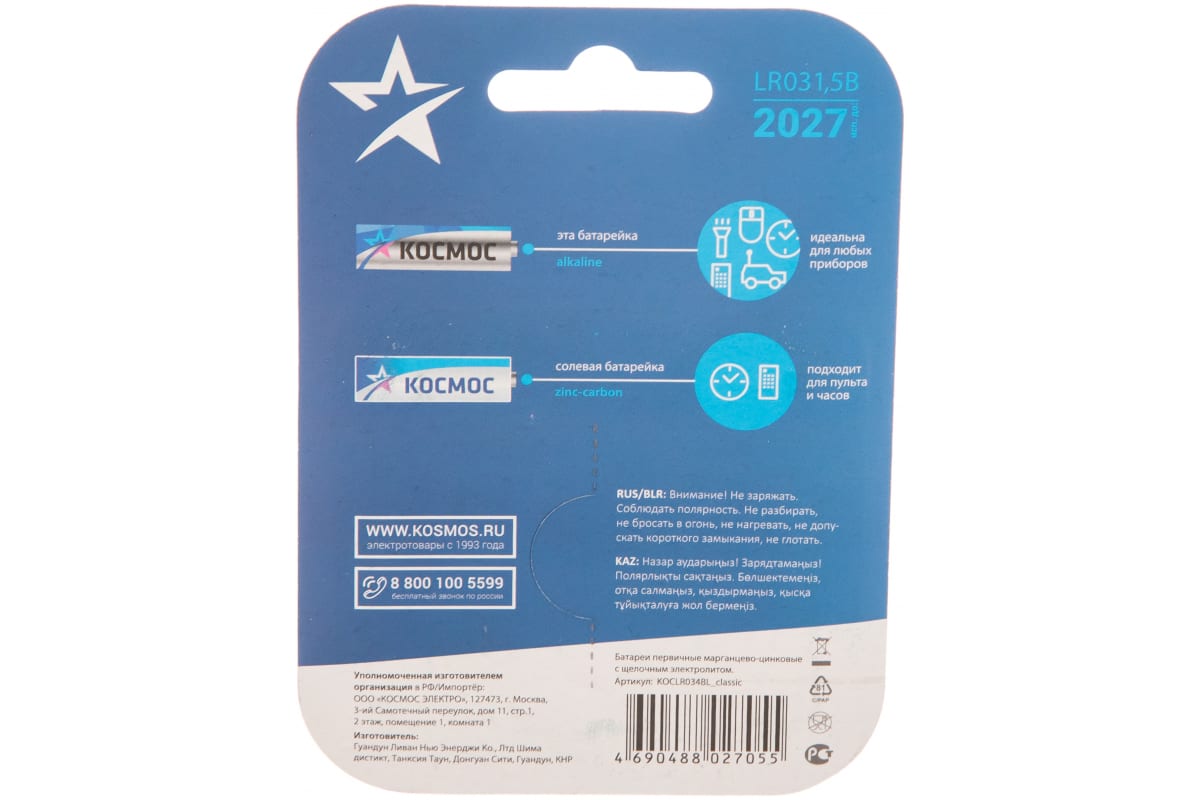 - Типоразмер AAA/мизинчиковая(R03;LR03;FR03)