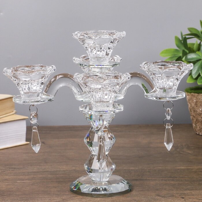 Подсвечник стекло на 5 свечей "Канделябр" 19х23х23 см