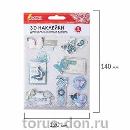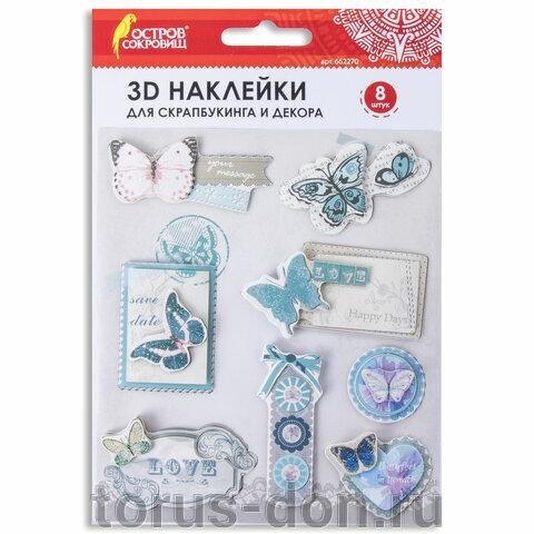 Наклейки бумажные объемные для скрапбукинга и декора БАБОЧКИ, 8 штук, ОСТРОВ СОКРОВИЩ, 662270