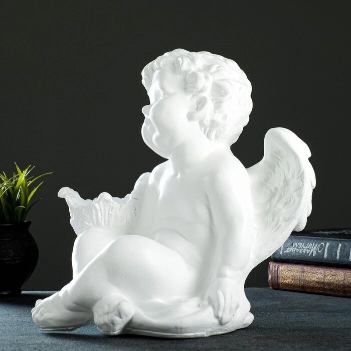Подсвечник "Ангел сидя в руке"белый, 26х21х30см