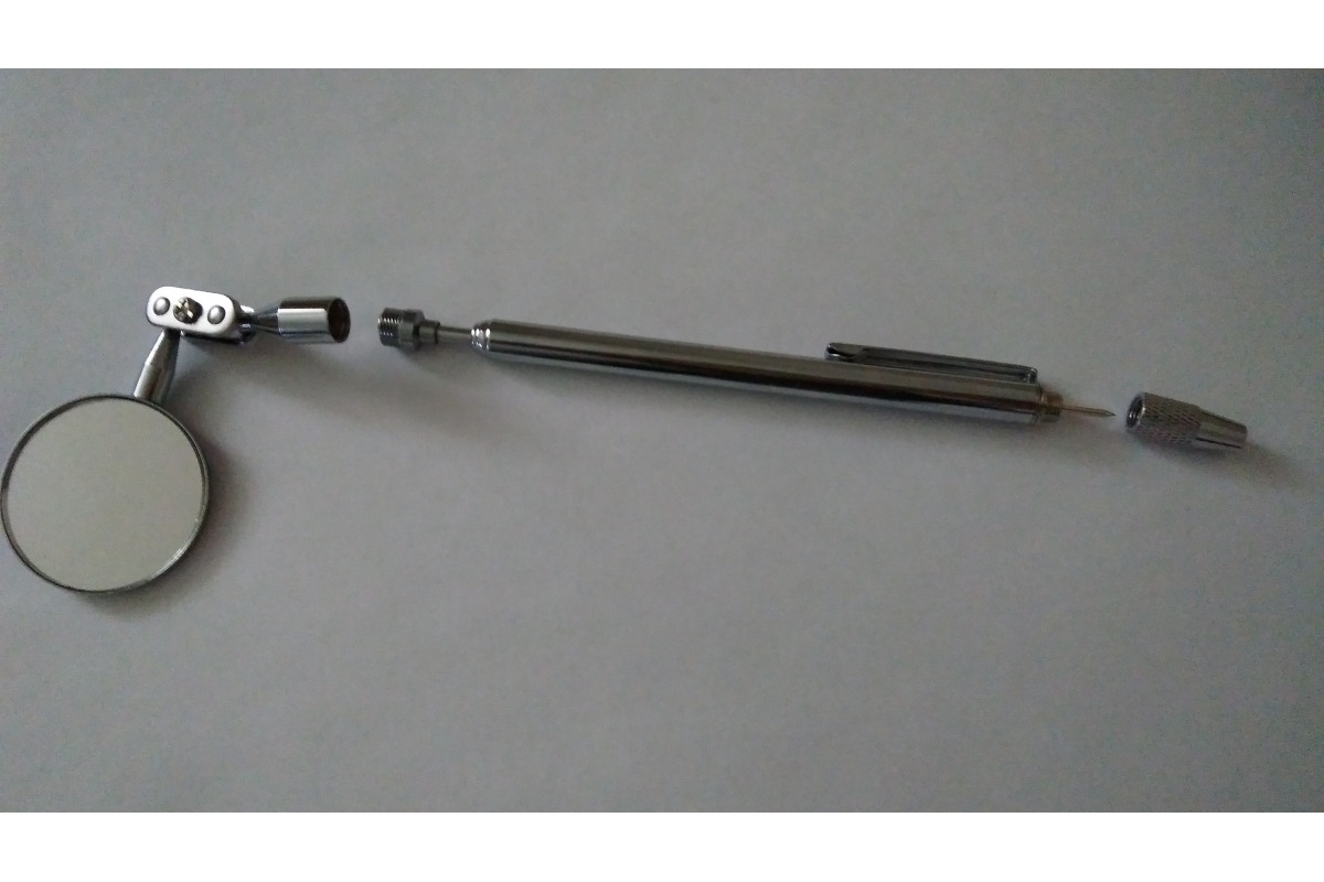 Телескопическое зеркало с магнитом и шилом 235мм FORCE 617 - вспомогательный инструмент, который широко используется в мастерских и автосервисах для осмотра узлов и механизмов, расположенных в труднодоступных местах. Изделие дополнительно оснащено магнитом и шилом.