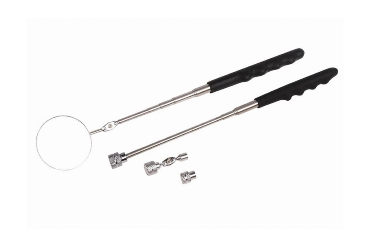 Телескопический магнит и зеркало в наборе REXANT 4 пр. 12-4821 предназначен для осмотра труднодоступных мест в автомобиле. Также инструмент позволяет достать металлические предметы.