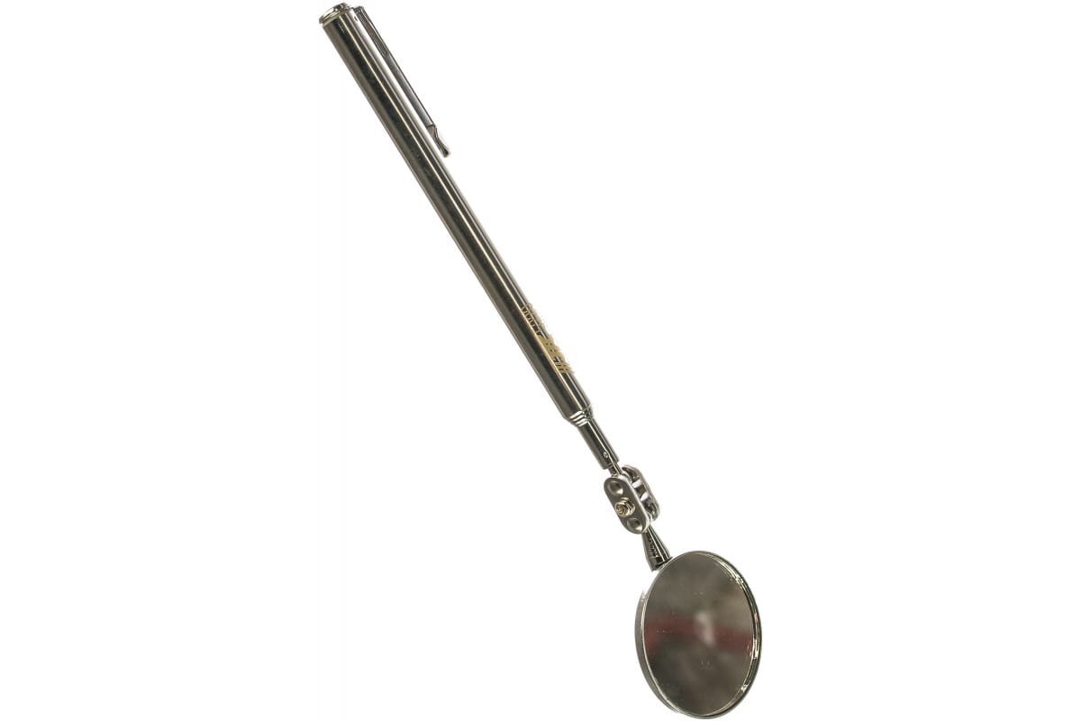 Телескопическое зеркало досмотра на держателе JTC 5220 широко применяется в профессиональных сервисных центрах по ремонту и обслуживанию автомобилей, а также в различных столярно-слесарных мастерских или в быту. С помощью данного инструмента можно осуществить осмотр труднодоступных деталей и механизмов без использования дополнительных приспособлений. Представляет собой металлический стержень с зеркалом-наконечником. Имеет 5 уровней изменения длины.