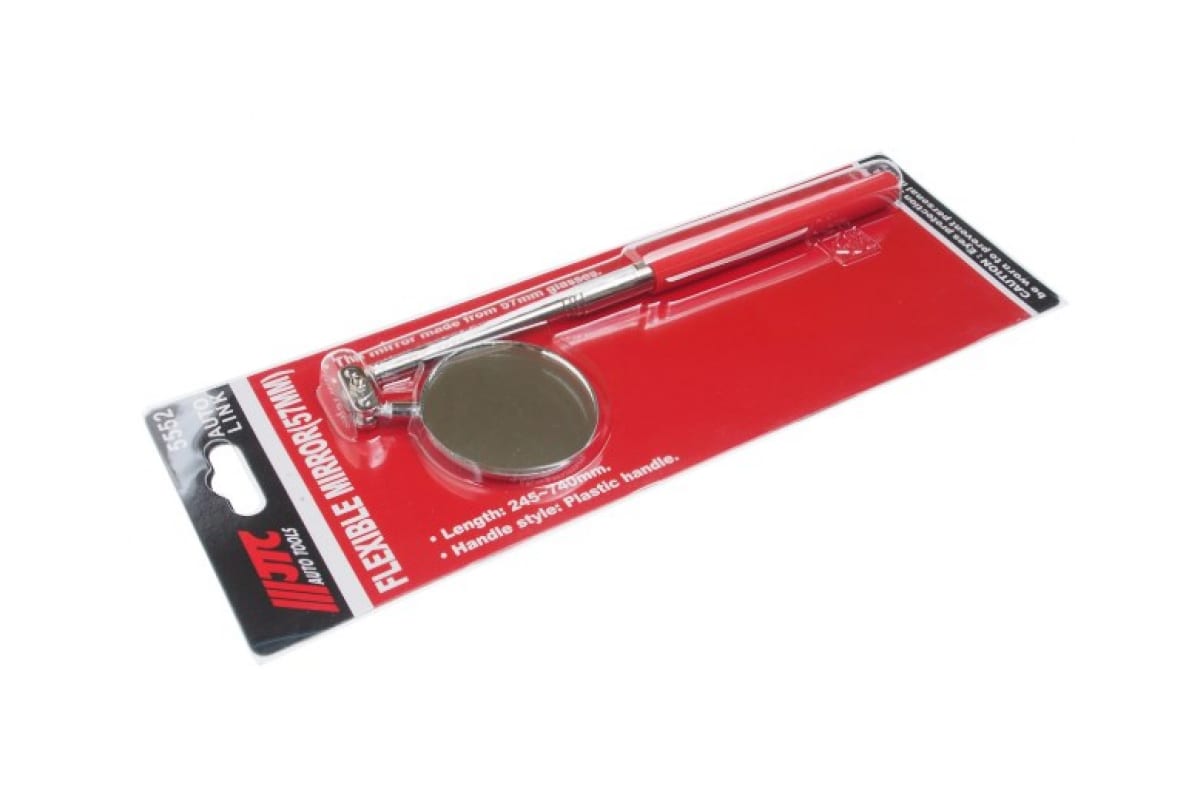 Зеркало на телескопическом держателе 57мм 245-740мм JTC 5552 успешно используется для осмотра мертвых зон автомобиля в процессе ремонта. Телескопическая рукоятка существенно упрощает эксплуатацию.