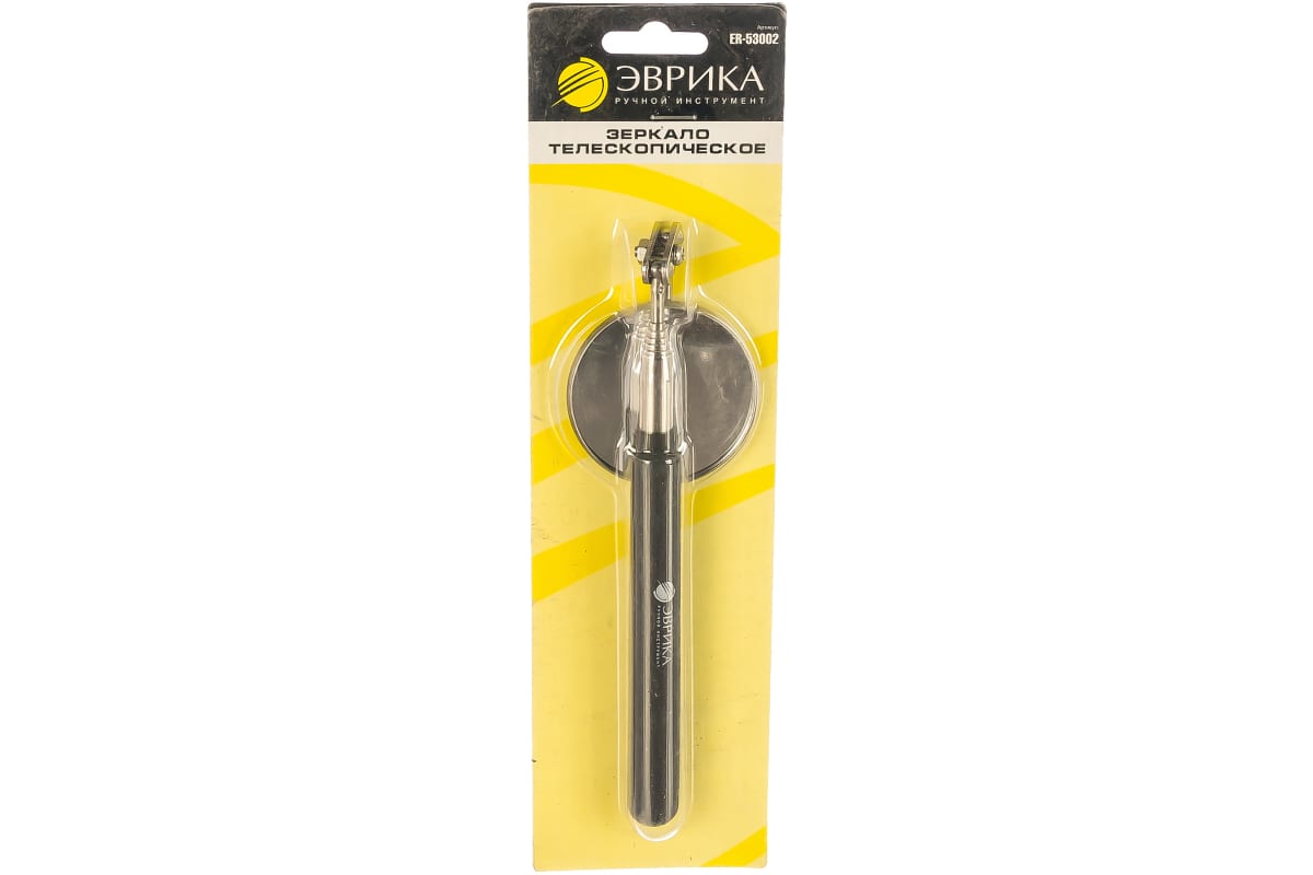 Телескопическое круглое зеркало, с резиновой ручкой, max длина 93,3см, D-57.1 мм. ЭВРИКА ER-53002 подойдет для автолюбителей, которым приходится регулярно ремонтировать двигатель.