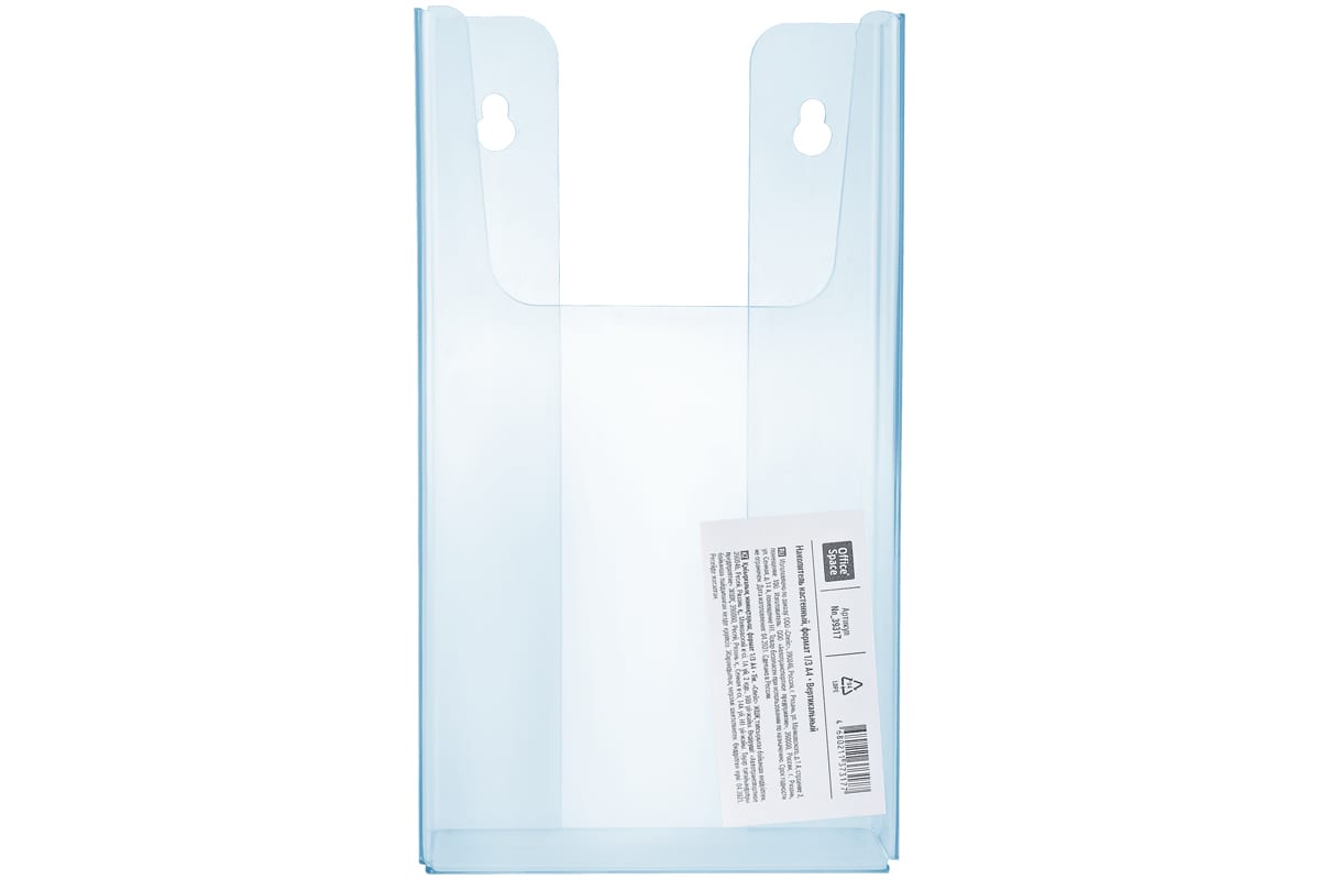 Настенный накопитель OfficeSpace 1/3 А4, вертикальный Nn_39317 изготовлен из прозрачного акрилового стекла. Подходит для размещения листовок, буклетов и иной рекламной продукции формата 1/3 А4. Крепление на стену производится через два верхних отверстия или посредством самоклеящихся полосок (в комплект не входят).