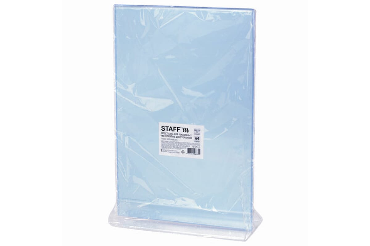 Вертикальная двусторонняя настольная подставка STAFF для рекламных материалов, А4, 291176 предназначена для размещения различной печатной продукции.
