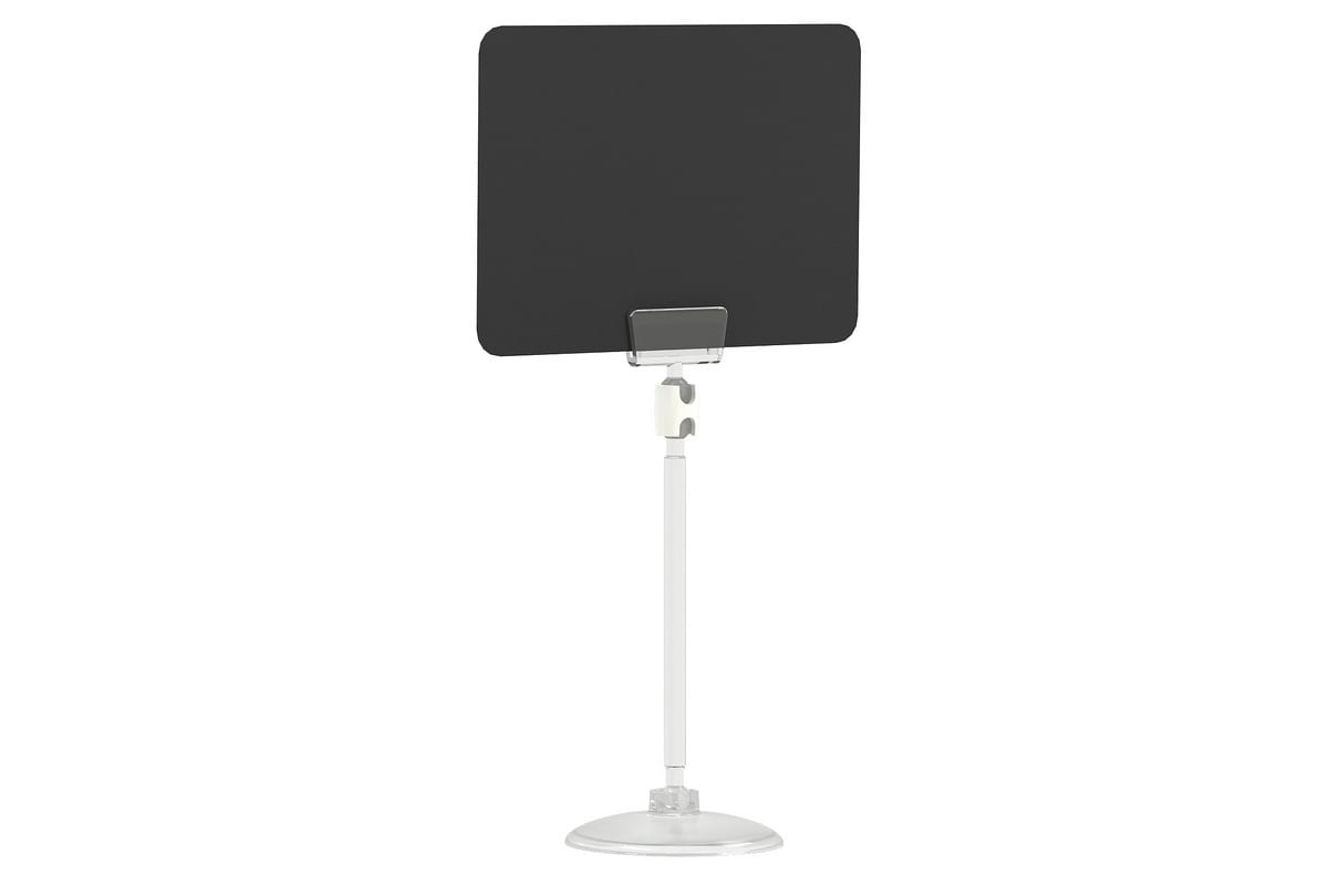 Ценникодержатель ООО Комус на круглой подставке со штангой, высота 10 см, прозрачный, 10 шт в упаковке 1133601 предназначен для размещения ценников.