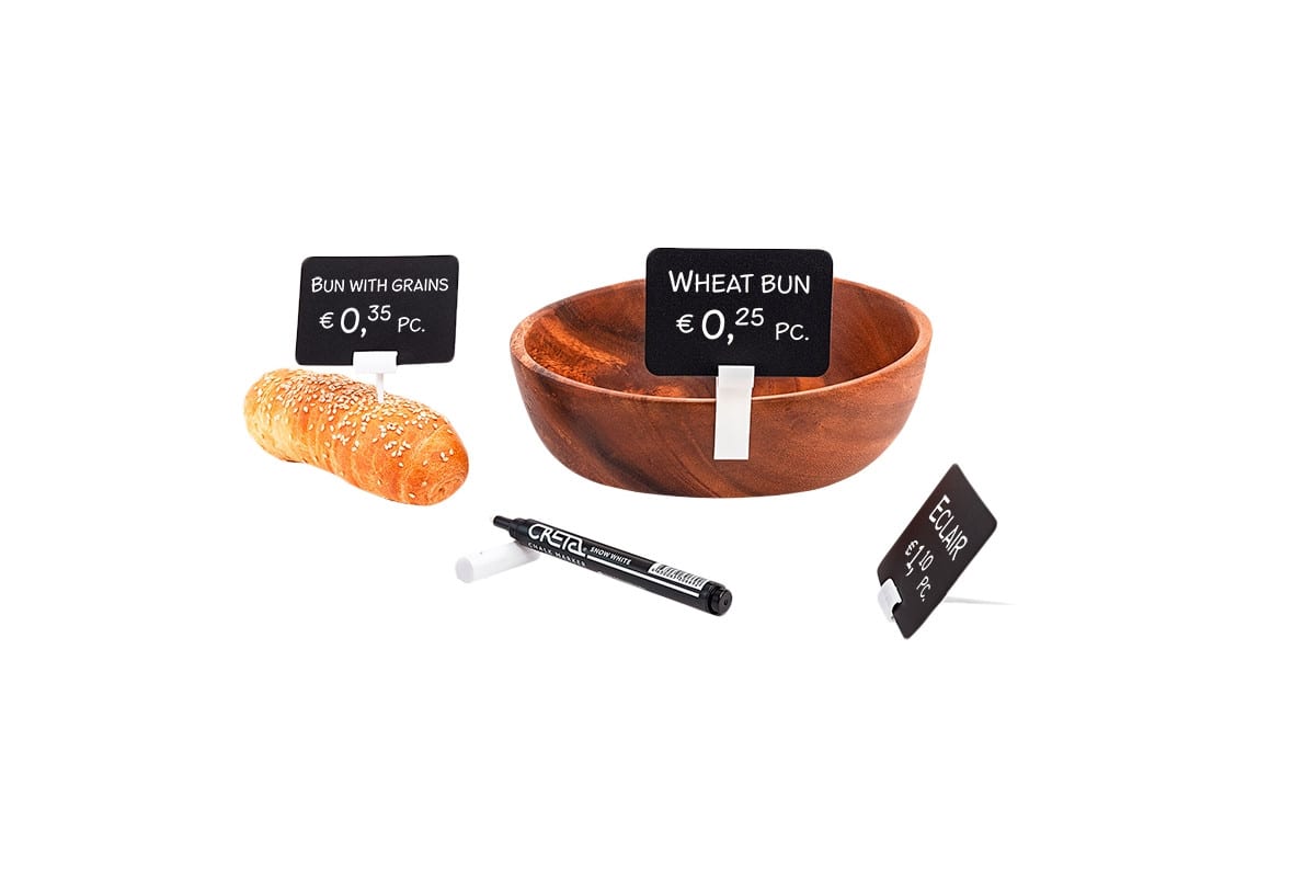 Держатель с меловой табличкой ООО Комус А8 иголка, зажим, маркер 202353 1199196 представляет собой готовое решение для демонстрации информации. Набор состоит из белых держателей-зажимов, белых держателей-иголок, черных табличек формата А8, мелового маркера белого цвета. Ценникодержатели подойдут для размещения ценников на поверхностях толщиной до 12 мм: посуде, коробках с товаром, обуви. Многоразовые таблички и смывающиеся водой маркерные надписи позволят сэкономить время и деньги при размещении ценников на товары.